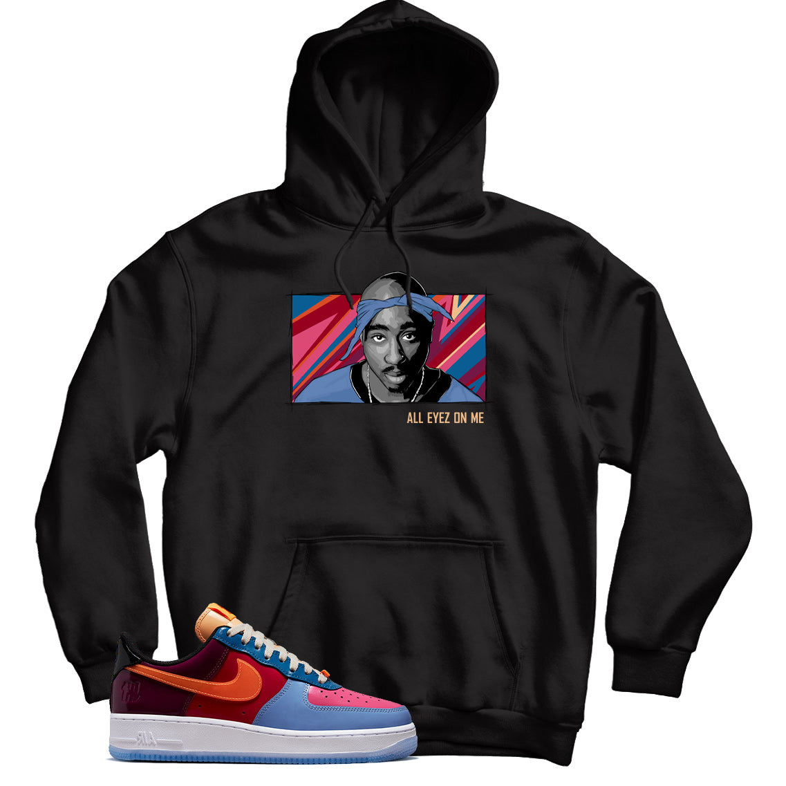 Hoodie designed to match Nike Air Force 1 Low Undefeated Multi-Patent, UNDFTD x Nike Air Force 1 Low Multi-Patent, Sneaker Shirt, Sneakerhead Clothing.