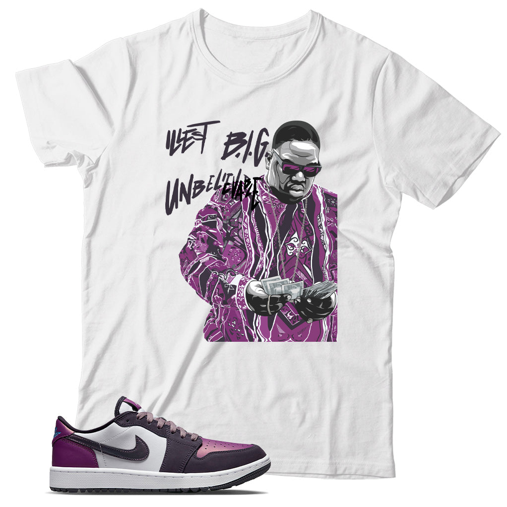 T-Shirt designed to match Jordan 1 Low Golf Purple Smoke, Sneakerhead Clothing.