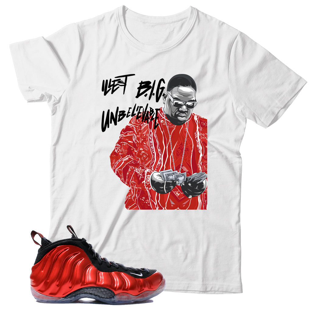 Biggie Sneaker Shirt Match Nike Air Foamposite One Metallic Red, Nike Air Foamposite One Metallic Red Shirt