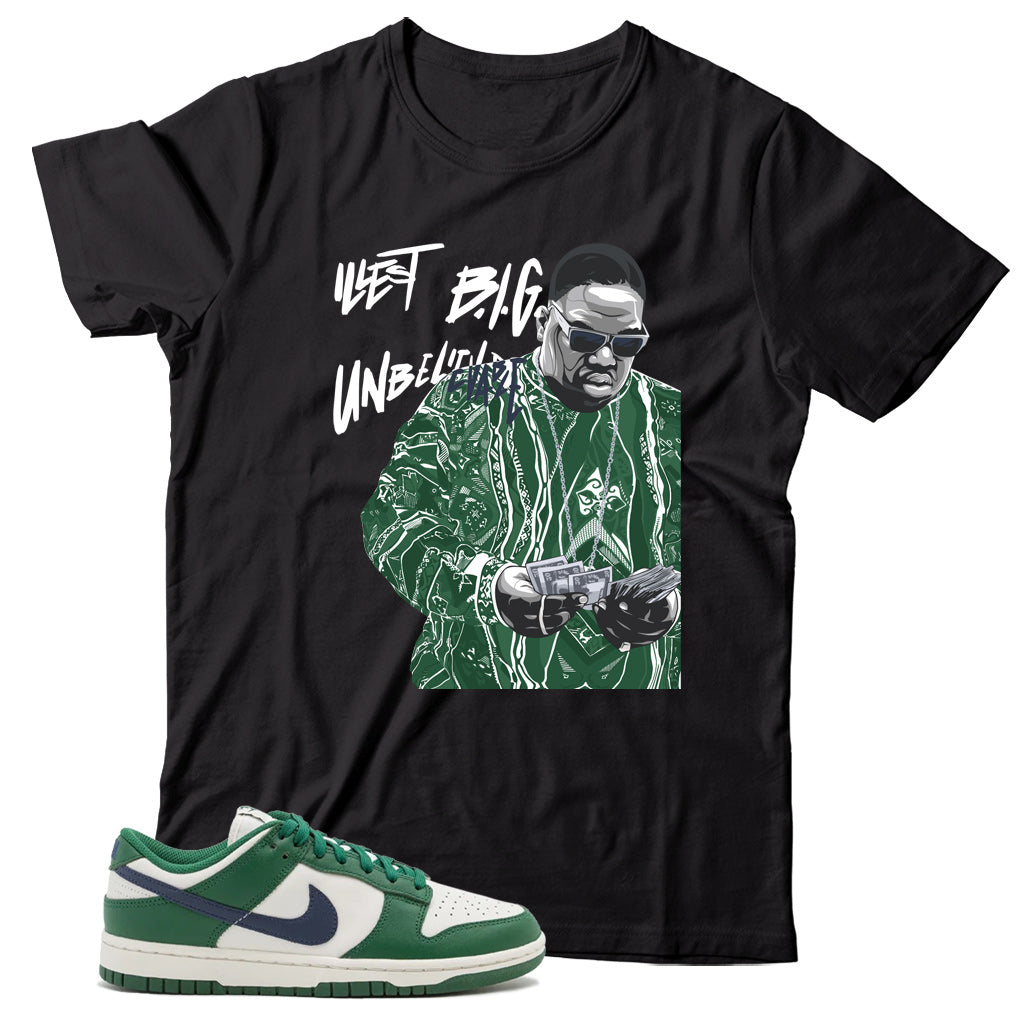 Biggie Sneaker Shirt Match Nike Dunk Low Green Navy, Nike Dunk Low Gorge Green Midnight Navy Shirt