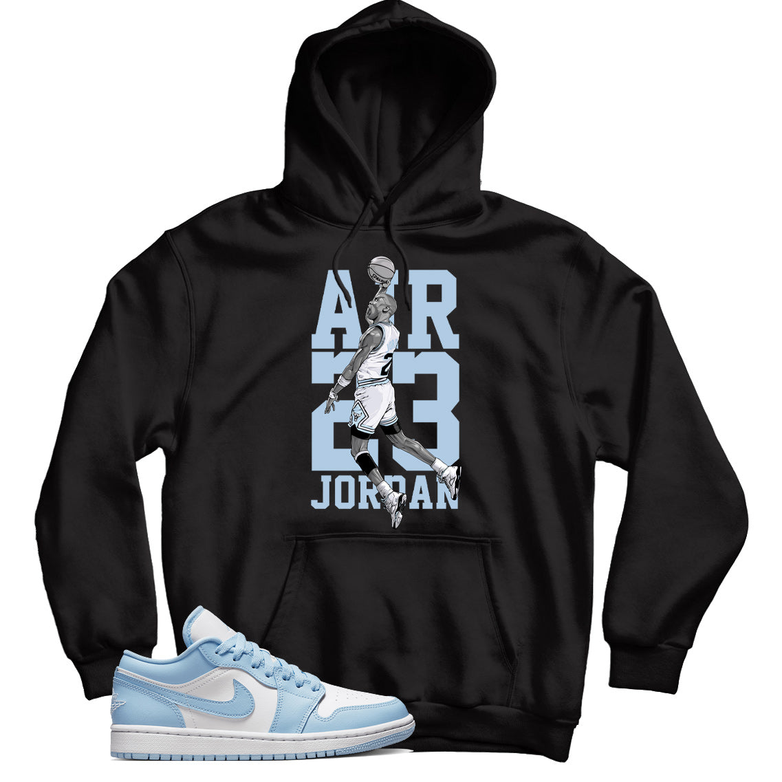 Hoodie designed to match Jordan 1 Low Ice Blue, Jordan 1 Low Aluminum, Sneaker Shirt, Sneakerhead Clothing.