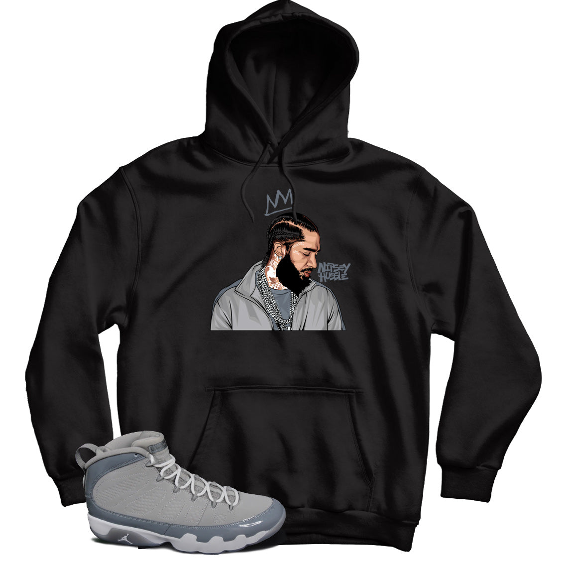 Nipsey Hoodie designed to match Air Jordan 9 Cool Grey. Jordan 9 Cool Grey Hoodie.